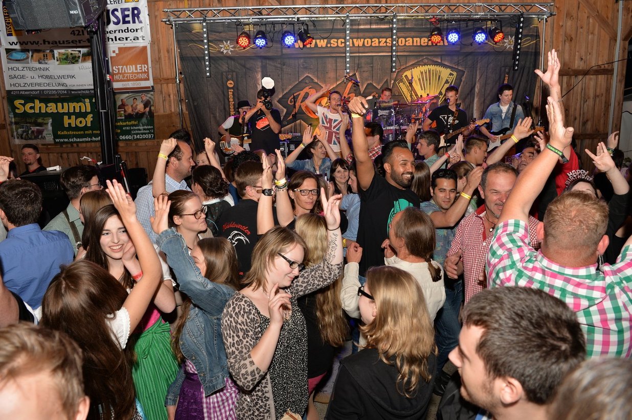 Wie bereits im vergangenen Jahr wird auch dieses Jahr die Band „Schwoazstoaner – Rock die Quetschen“ den Partygästen in Dirndl und Lederhose wieder so richtig einheizen. Ihr Repertoire reicht von „alten“ Hits, über aktuelle Charts bis hin zu eigens komponierten Songs.